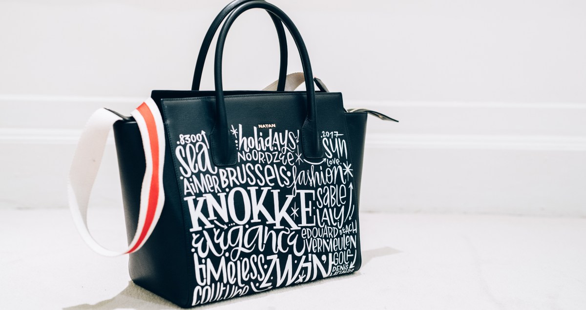 Denis Meyers, typographe , confirme bien son intérêt pour la mode. Après un partenariat avec Bellerose en 2016 , c’est avec la maison NATAN que l’artiste s’associe afin de customiser ETHAN, le sac emblématique de la maison de couture belge.